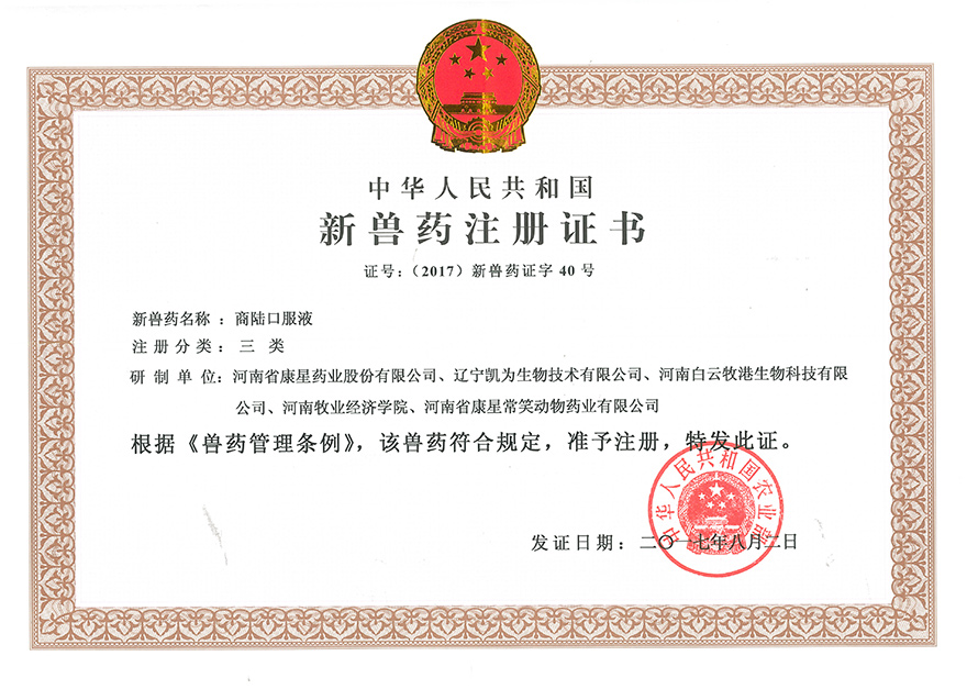 企業(yè)在發(fā)展過程中,十分重視知識產(chǎn)權(quán)和科研成果的保護(hù)工作,目前公司共有4項發(fā)明專利,1項國家三類新獸藥證書。為表彰我公司在科研工作中做出的突出貢獻(xiàn),錦州市科技局認(rèn)定我公司為2015年錦州市科技創(chuàng)新型中小企業(yè)。